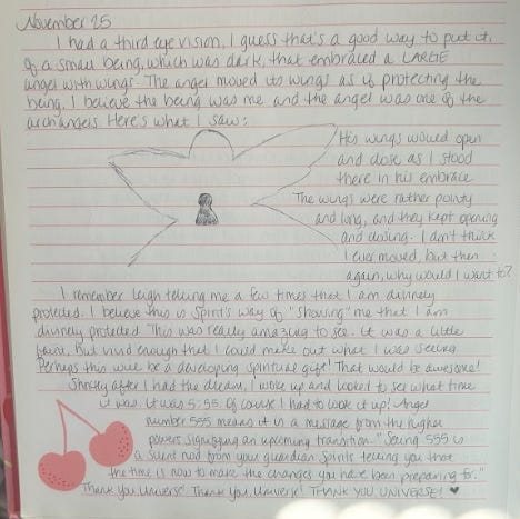I made an audio clip on December 11, 2024, about this dream. What’s wild is that the time of the screen recording above, with Divine Fem Fatale, happens around 12:11, and the date of the dream is 12/11. The Divine is divining and the signs are signing!