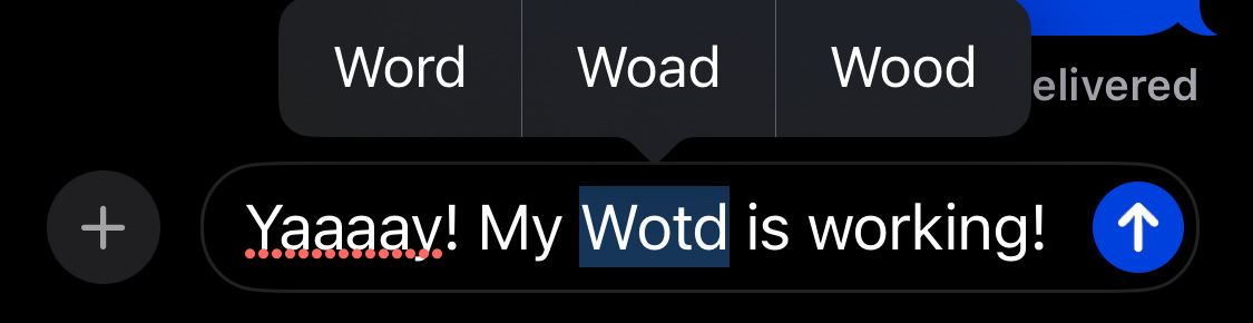 As I was sending my daughter a text message about Word finally working, I noticed that the system autocorrected to “Wotd.”
